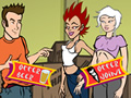 - A very hot blond girl is on her back tied up BDSM style as a crazy lesbian with a strap on dildo starts drilling her in the pussy; fucking her fast and hard and then finishing her off by eating her pussy.
